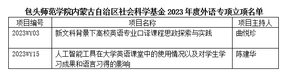 附:包头师范学院内蒙古自治区社会科学基金2023年度外语专项立项名单