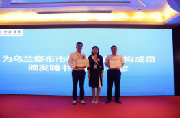 郭金虎、格根哈斯分别为乌兰察布市校友分会的会长、副会长颁发了聘书;张东虎会长为各位理事颁发了聘书。