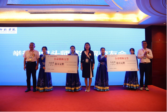 格根哈斯代表学校接受校友企业捐赠,集宁新世纪中学、内蒙古“鸿雁”项目创智汇分别向母校校友会捐赠10万元人民币。