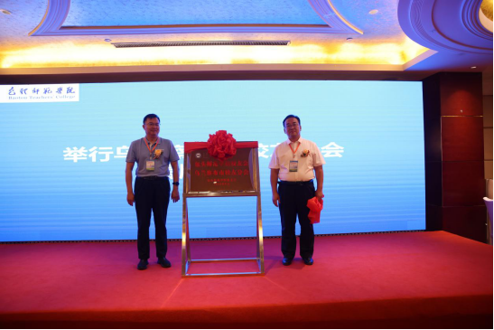 郭金虎和乌兰察布市校友分会会长魏山虎共同为乌兰察布市校友分会的成立揭牌。