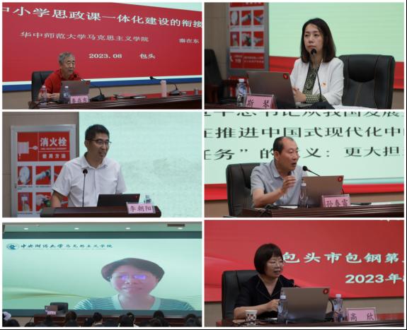 培训会上,华中师范大学马克思主义学院博士生导师秦在东教授,天津师范大学马克思主义学院副院长、博士生导师李朝阳教授,中央财经大学马克思主义学院教授、博士生导师冯秀军教授分别为参训学员作《大中小学思政课一体化建设的衔接机理》《关于讲好新时代思政课的思考》《将科学世界观方法论融入思政课教学》专题讲座。