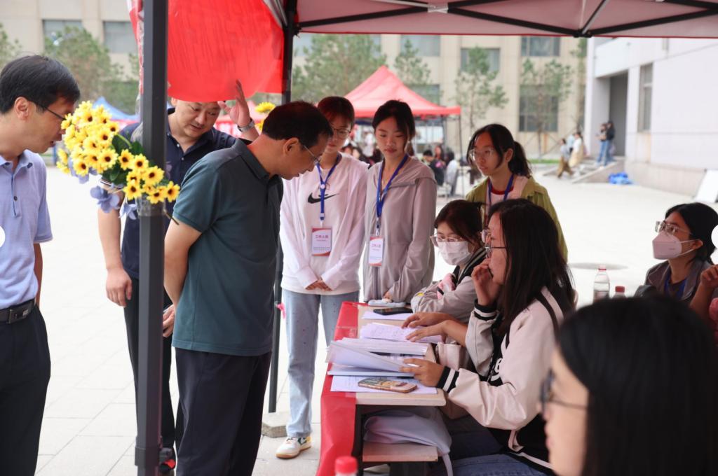 迎新现场,黄海一行逐一走访了各部门和学院迎新接待点,详细了解我校新生报到情况,慰问迎新工作人员,与新生和家长亲切交流,向2023级新生表示热烈的欢迎和衷心祝贺,并勉励同学们要保持学习的热情、做好学业规划、抓住在校学习的机会,实现自己的长远目标。