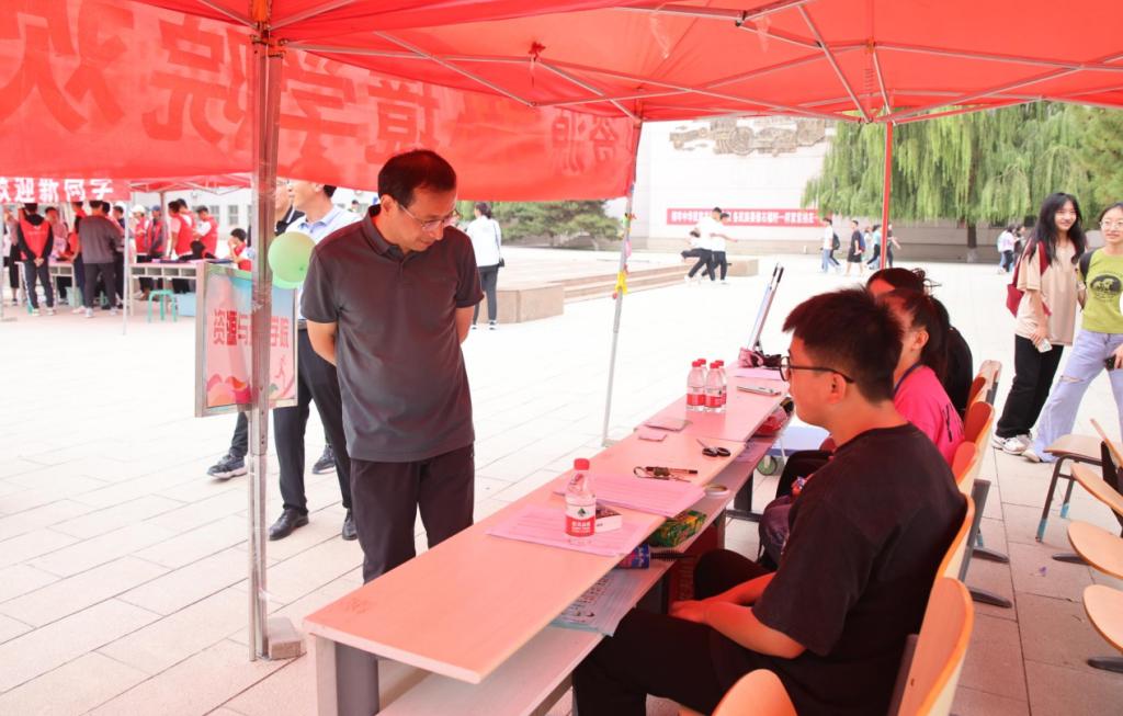 我校2023级新生于9月5日—7日来校报到。7日上午,校党委书记黄海在相关部门负责人的陪同下深入迎新工作点视察指导迎新工作。
