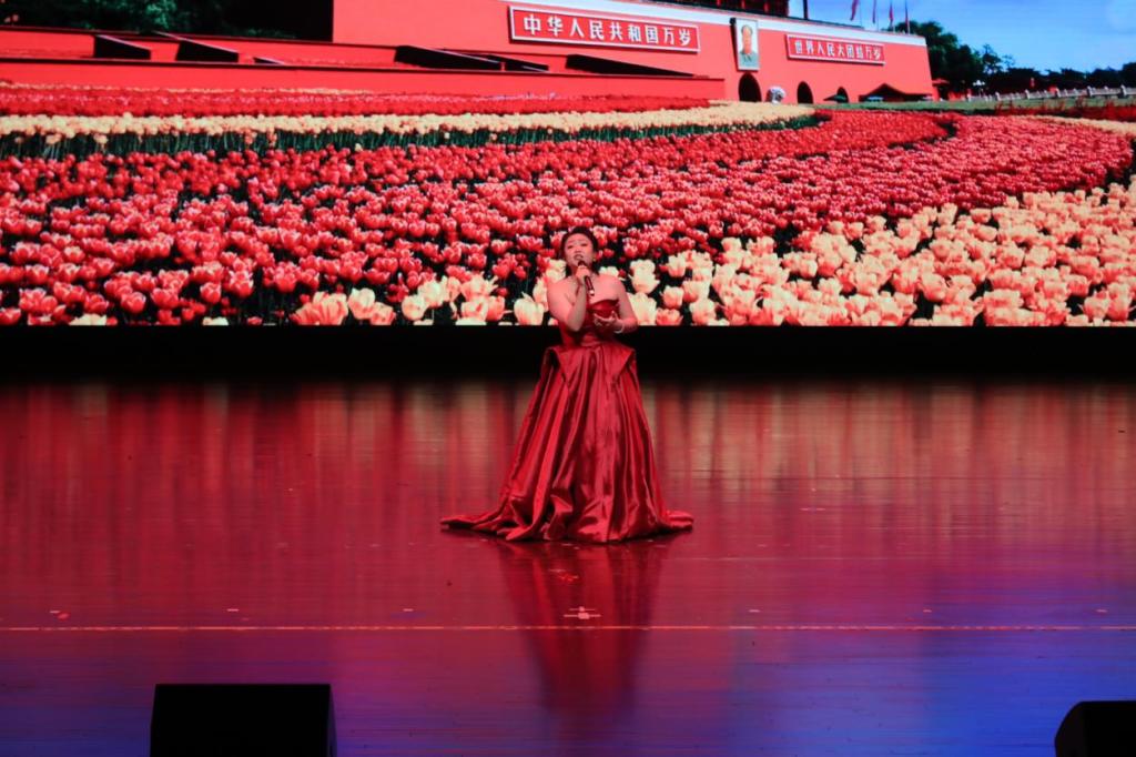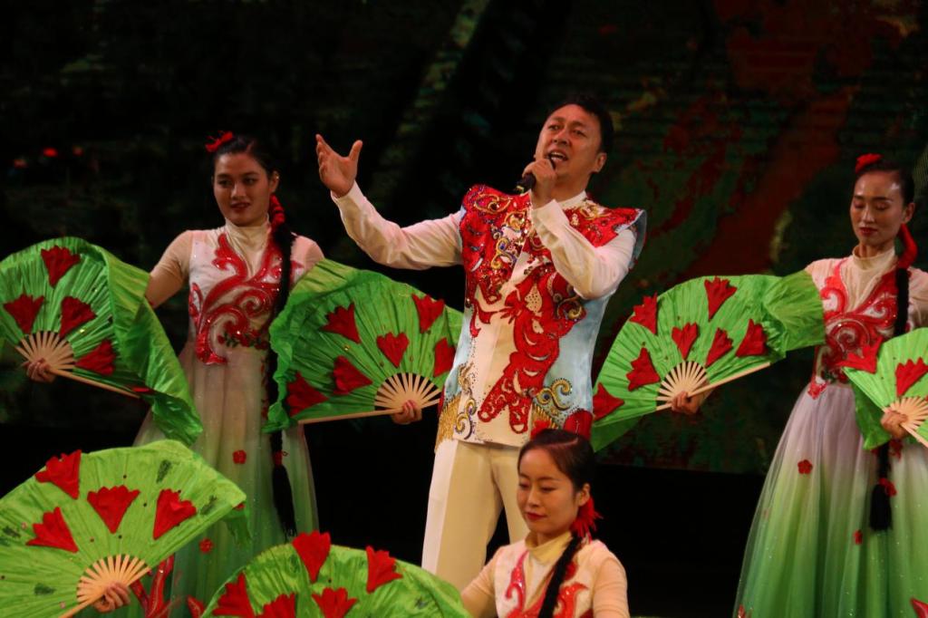 演员们以热烈激扬的歌声唱响了《亲亲西北风》《羊肚子手巾三道道蓝》,从深情优美的《就恋这把土》、《陕北是个好地方》到慷慨激昂的《大生产》、《欢庆秧歌》,从婉转悠扬的《山丹丹开花红艳艳》、《黄河船夫曲》到真挚感人的《寸心》、《我爱你中国》,每一首歌都如同一幅生动的画卷,展示和诉说着宽阔厚重的黄土地上勤劳质朴的的陕北人民对这片热土的热爱,对伟大祖国的热爱,对中国共产党的赞颂,对红色革命精神的传承。