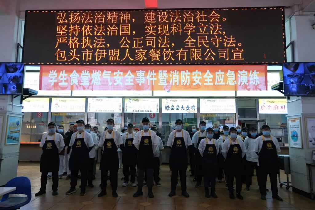 为进一步保证我校食堂用气安全,有效避免燃气事故的发生,切实保障校园安全稳定,确保师生生命和财产安全,强化食堂从业人员的消防安全意识,掌握对突发燃气泄漏和火灾事件的处置技能,12月1日下午,后勤处餐饮服务管理中心在南院食堂组织开展了燃气安全事件暨消防安全应急演练,校党委委员、副校长杨海燕参加并指导了演练活动,包头市燃气有限公司、学校后勤处、保卫处、餐饮中心全体人员和两院餐饮企业从业人员参加了演练。
