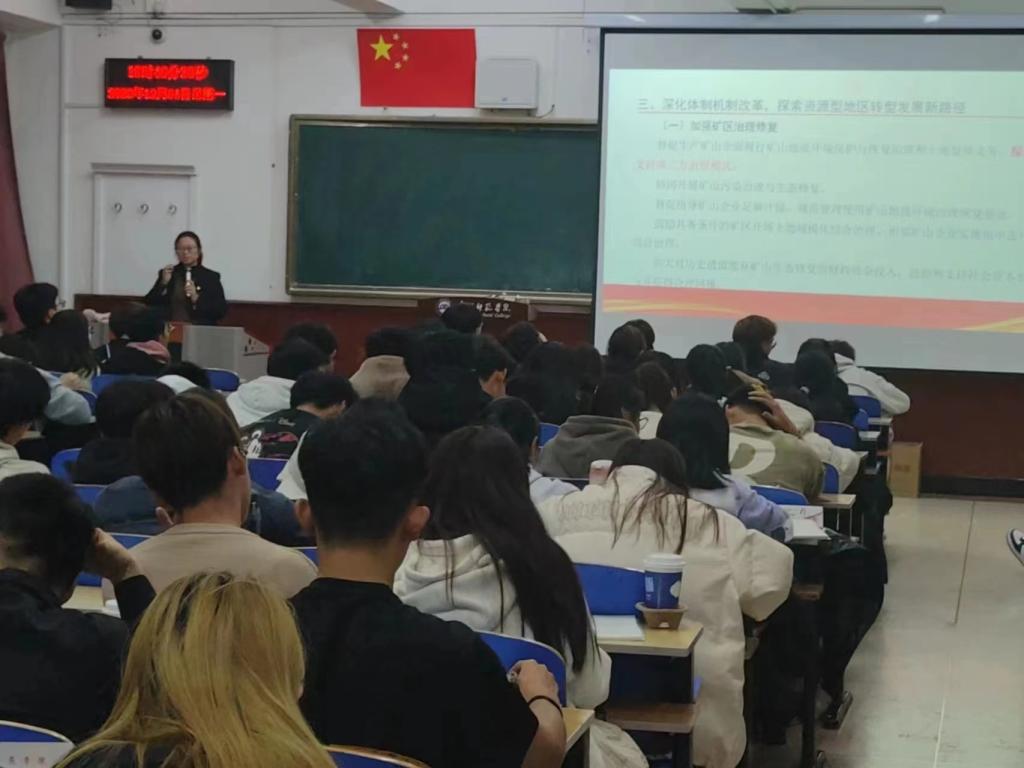 董老师带领同学们共同学习了“五句话”的事实和道理、深刻领会体悟习近平总书记对内蒙古的关怀厚爱和期望嘱托、深入学习领会和全面把握《意见》等内容。从学生专业发展的角度,引导同学们以信息化驱动推动内蒙古高质量发展,希望大家能够扎实专业本领,提高学以致用的能力,切实做敢想敢为又善作善成的新时代青年。