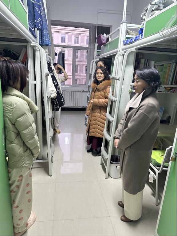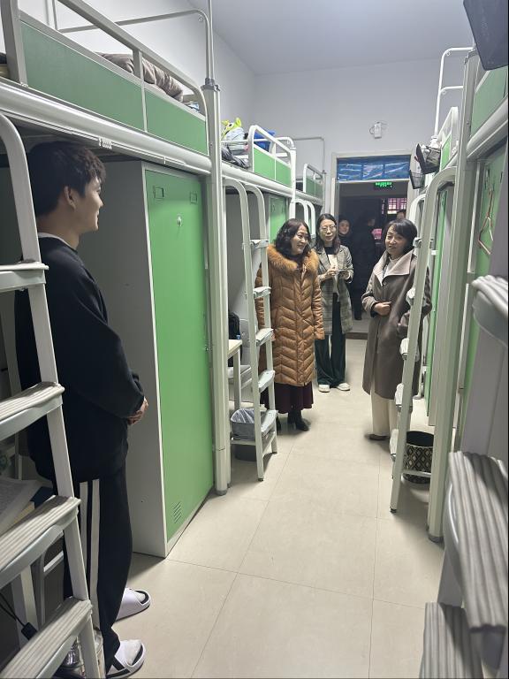 12月5日,校党委委员、纪委书记刘醒君深入九原校区学生公寓走访慰问。刘书记认真查看了学生党员活动站、辅导员值班室、洗漱间、淋浴间、自习室等功能间,了解同学们的日常生活情况,又前往学生宿舍与同学们亲切交流,关切询问大家生活、学习是否便利,鼓励同学们要坚定理想信念、树立远大志向,科学规划学业、练就过硬本领。刘书记的亲切问候和语重心长引来了同学们的频频点头,同学们衷心感谢学校领导的关心和指导,对学校创造的良好学习条件和生活环境纷纷点赞,并表示将珍惜时间,合理安排好自己的大学学习与生活。