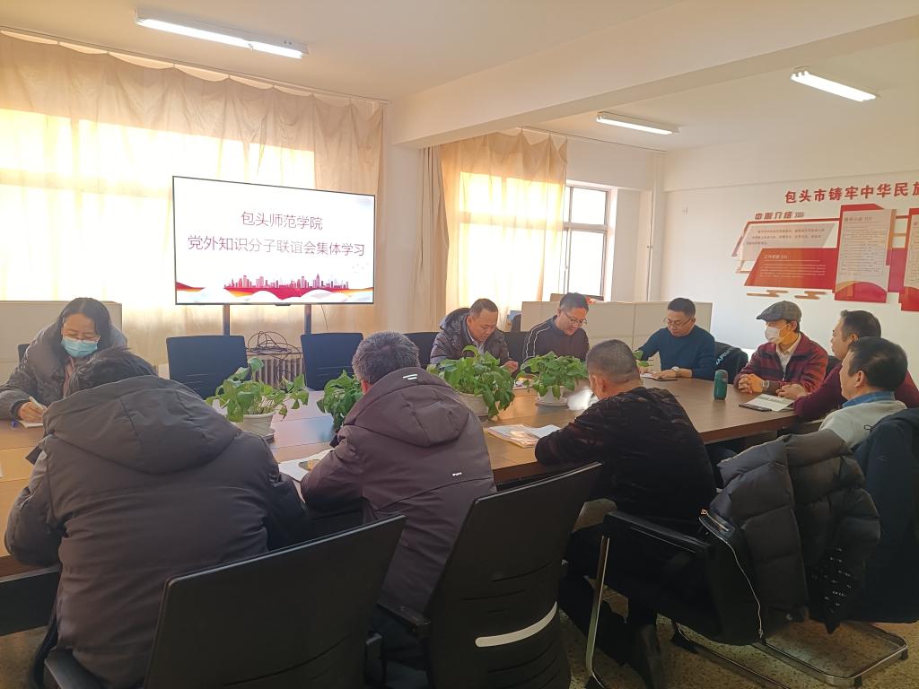 12月21日,校知联会在博学楼702会议室召开集体学习会。会上,全体会员集体收听收看了中央党校(国家行政学院)社会和生态文明教研部副教授陈氚所作“如何走好中国式现代化道路?”专题讲座。知联会会长赵国忠领学了教育部党组书记、部长怀进鹏刊发在《求是》杂志2023年第24期的署名文章——厚植爱国情怀 培育时代新人,传达了内蒙古党外知识分子联谊会第三次会员大会精神,部署了知联会下一步工作。
