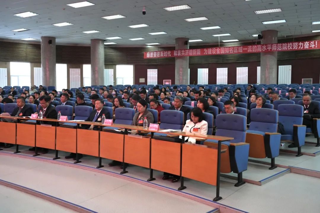3月14日8时30分,召开第一次全体会议,校党委副书记、校长郭金虎作了题为《抢抓机遇 笃行争先 实干担当 感恩奋进 为建设“全国知名,区域一流”的高水平师范院校而团结奋斗》的工作报告。