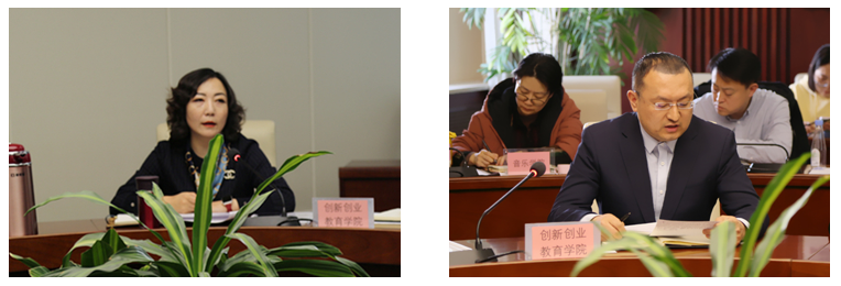 信息科学与技术学院、化学学院、美术学院、外国语学院分管领导分别从二级学院专创融合、大赛组织、项目培育、SYB创业培训等方面作了典型发言。