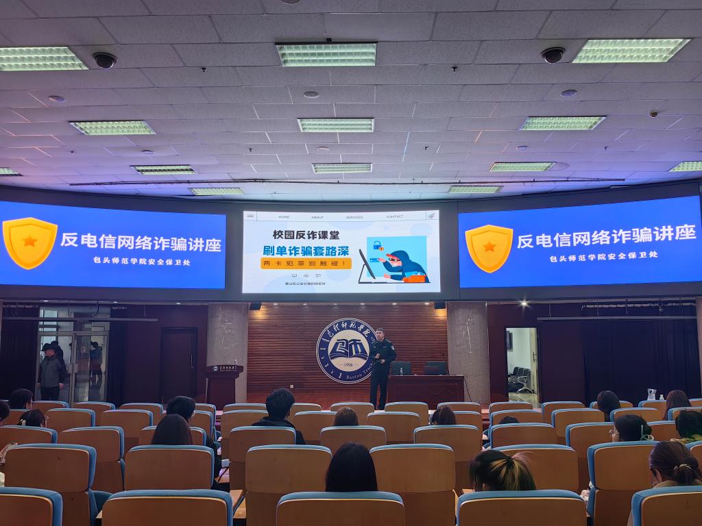 为深入贯彻落实习近平总书记关于加强国家安全教育的重要指示批示精神,按照自治区教育厅打造“青春集结安全北疆”特色品牌要求和全民国家安全教育日系列活动要求,进一步扼制电信网络诈骗势头,我校在青山校区深入开展系列反电信网络诈骗宣传教育活动,安全保卫处联合青山公安分局于4月18日、4月19日晚在博学楼学术报告厅举办反电信网络诈骗专题讲座,驻青山校区各学院选派师生代表聆听了讲座。