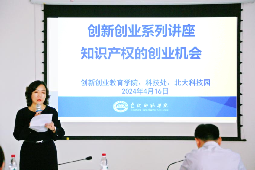 4月16日,我校在恒德楼大讲堂举行了创新创业系列讲座—《知识产权与创业》,特邀前国家知识产权局资深审查员、智专北斗(天津)知识产权公司总经理付少帅主讲。包头北大科技园办公室主任罗斌,我校科技处、创新创业教育学院、各学院课题研究教师、创新创业基础课教师、创业园入驻企业负责人、创新创业精英班学生、参加各级大赛师生代表参加了讲座。