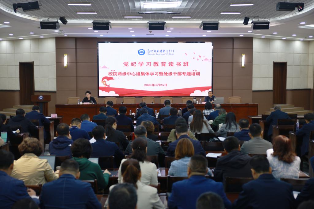 4月25日上午,学校在图书馆会议厅举办党纪学习教育读书班、校院两级理论中心组集体学习暨处级干部党纪学习教育专题培训。全体校领导、全校副处级以上干部、纪委委员、纪检委员、党支部书记参加学习。