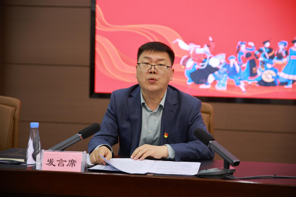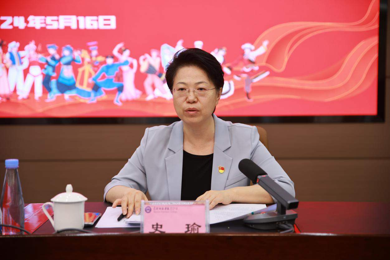 为深入学习贯彻习近平总书记关于加强和改进民族工作的重要思想,深入推进学校铸牢中华民族共同体意识各项工作,5月16日,我校在图书馆会议厅召开全面贯彻铸牢中华民族共同体意识主线工作推进会。学校党委书记黄海参加会议并作讲话,二级学院党总支书记、部门负责人、各研究基地、研究中心、研究院负责人参加了会议,校党委副书记史瑜主持会议。