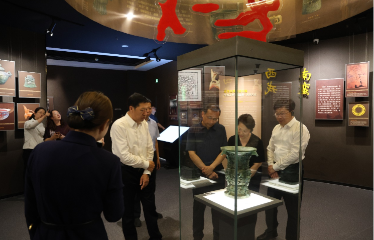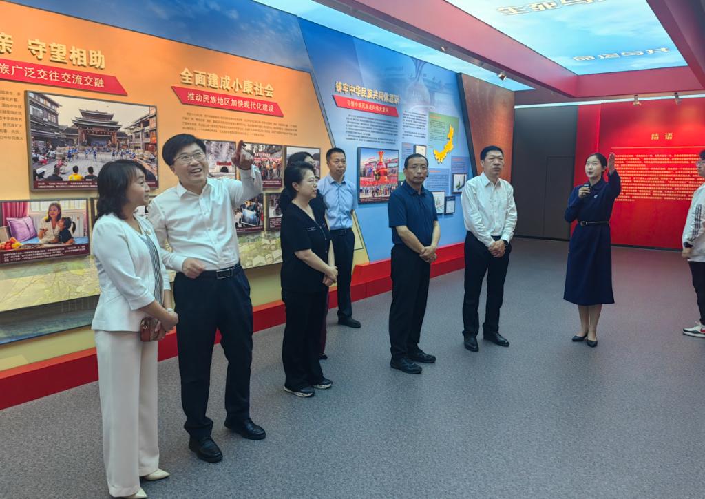 调研中,黄海等一行与呼和浩特民族学院党委书记刘九万等党政领导围绕贯彻落实铸牢中华民族共同体意识主线、加强铸牢中华民族共同体意识宣传、教育、研究等方面的情况进行了充分交流。随后,我校一行认真考察了校史馆、铸牢中华民族共同体意识教育馆、民族团结进步文化长廊、时代楷模人物长廊,参观了学校美术学院2024届毕业生毕业作品展,“北疆记忆”非遗乐器展。