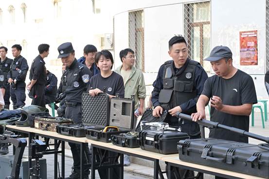 演练展示结束后,现场各位领导和师生员工进入展区观摩反恐应急车辆和装备器材。