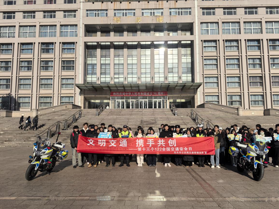 为切实加强学校安全工作,增强广大师生的道路交通法制和交通安全知识,减少道路交通事故,增强师生的安全防范意识,提高学生的自护自救能力,在第十三个“122”交通安全日,我校联合青山区交警大队一中队于12月2日举办“文明交通.携手共创”交通安全宣传教育活动。青山校区各学院学生工作办公室,团总支老师、学生干部、学生代表300余人参加。