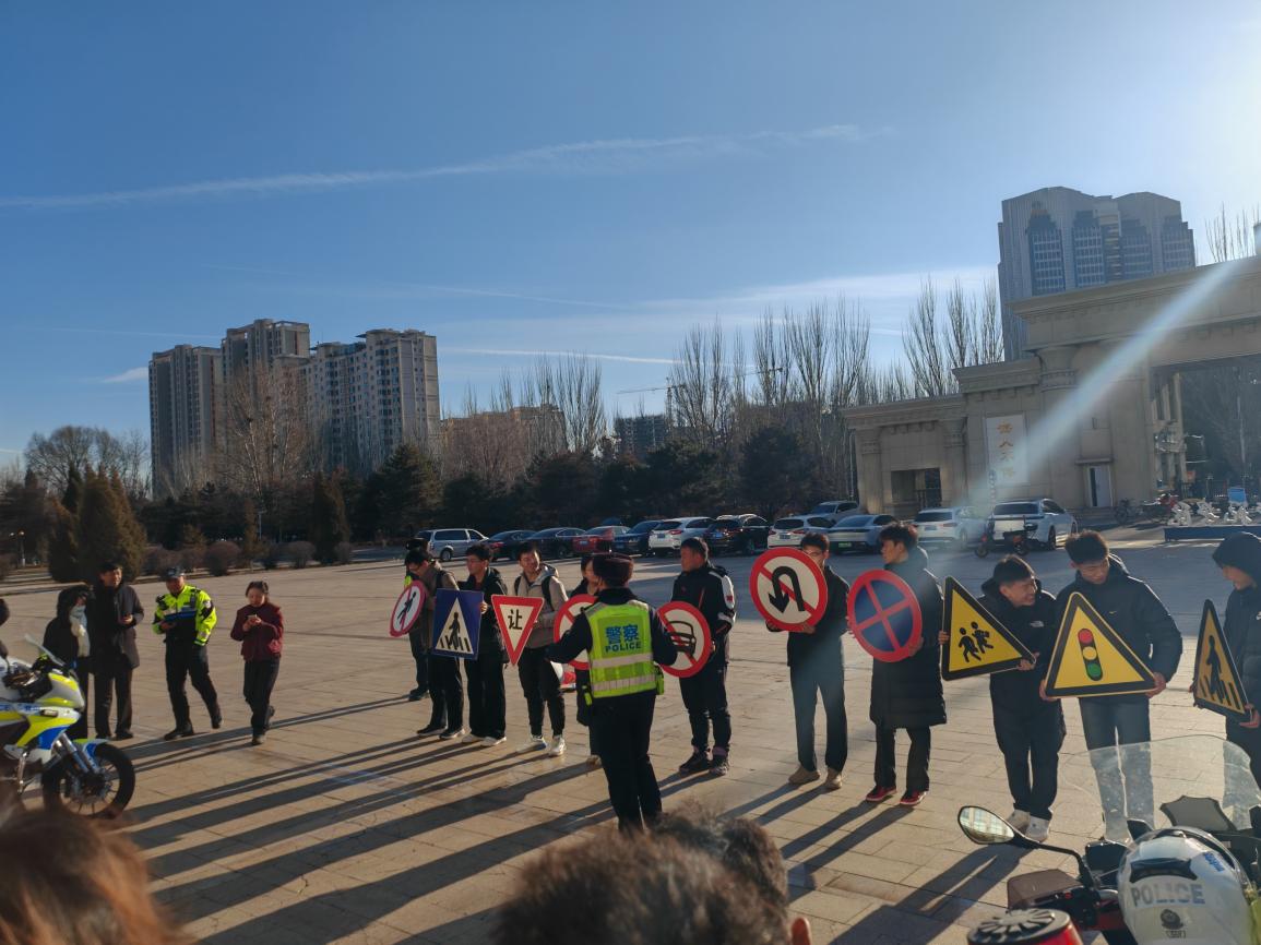 青山区交警大队一中队王慧博警官现对大学生乘驾车安全、酒驾危害及防范、骑乘骑行共享单车与电动自行车安全及注意事项、杜绝飙车行、秋冬季特殊天气出行交通安全注意事项等进行宣传教育。随后与学生开展互动体验,学习讲解交通警察指挥手势、认识交通标志,介绍汽车盲区知识以及交通安全防护方法。最后希望我们的每一位师生从自身做起,不饮酒驾车,骑乘电动车佩戴头盔,遵守交通规则,在特殊天气谨慎出行,出行时不要边走边听音乐、看手机,平平安安出行,快快乐乐学习。