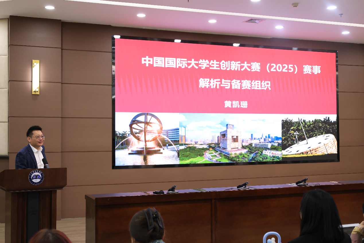 工作会后,黄凯珊为师生作了《中国国际大学生创新大赛(2025)大赛解析与备赛组织》专题讲座。他从大赛赛事情况、备赛组织和规则解析、大赛参赛攻略等方面,讲解了大赛各赛道的侧重方向和差异点。师生们纷纷表示,此次讲座内容丰富、案例经典,使他们受益匪浅,对项目质量提升起到了积极的促进作用。(创新创业教育学院)