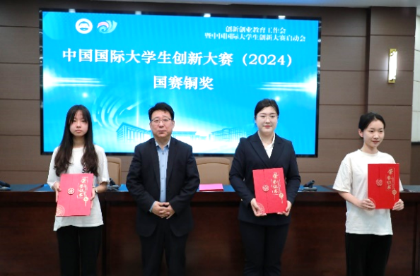 会上,启动了我校2025年中国国际大学生创新大赛,举行了中国国际大学生创新大赛(2024)表彰仪式。校领导和科技局领导等为获奖优秀指导教师代表和学生代表颁发了荣誉证书。