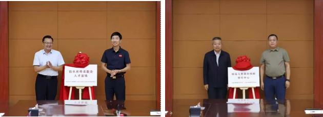 市委常委、副市长田科瑞与包头师范学院校长郭金虎共同为养老服务工作基地揭牌;市民政局党组成员、副局长梁少伟与副校长张建林共同为儿童服务保障研究中心揭牌;市社会福利院、市养老服务中心等单位负责人,分别与包头师范学院教育科学学院、继续教育学院负责人为实践及实训基地揭牌。