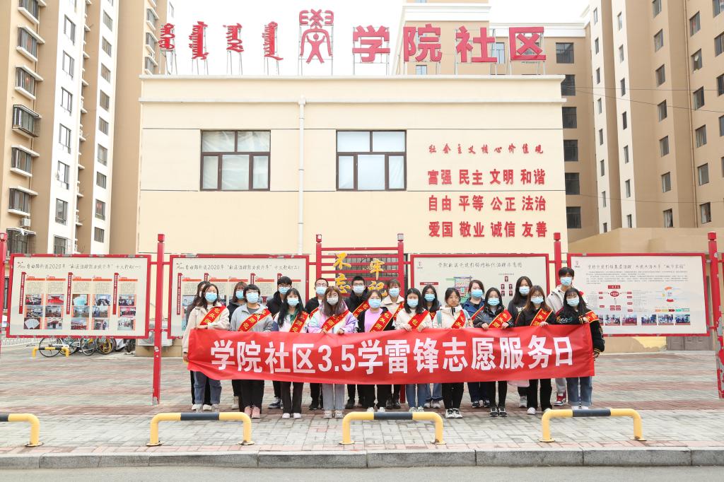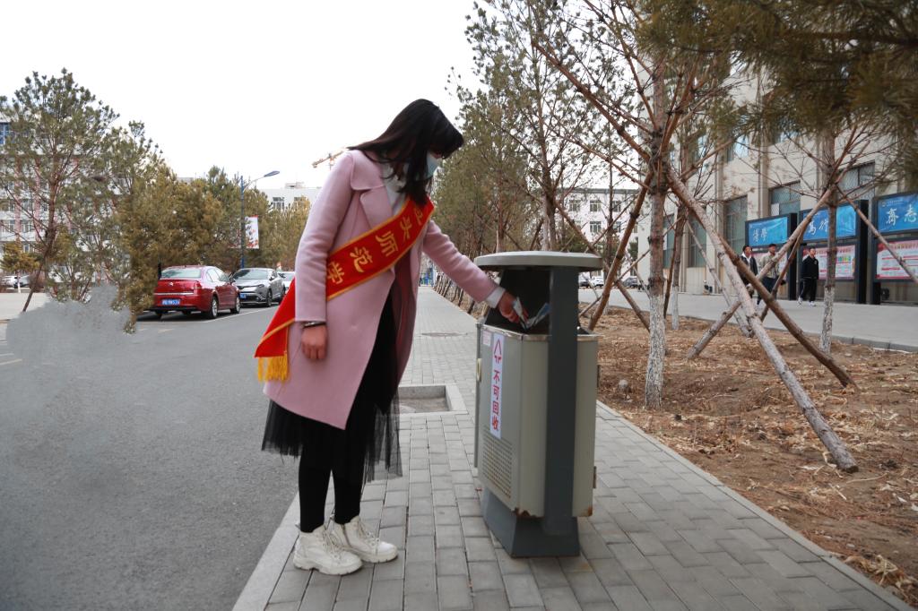 校青年志愿者协会组织开展了以“践行新时代雷锋精神,献礼建党100周年”为主题的志愿服务活动。自3月3日开始,组织同学们建立环保小分队,分别在教学楼、宿舍楼、校园周边检查宣传标语是否规范、捡拾地上的烟头等垃圾并进行环保宣传,走进教室擦洗黑板、清理被遗漏的垃圾,以实际行动助力美丽校园的建设。全校所有的二级学院组织志愿者自2月27日起至今,连续前往包头市青山区自由路街道学院社区开展志愿服务,志愿者们协助社区工作人员开展了社区卫生大扫除、清洗墙面涂鸦、清理卫生死角、捡拾地面垃圾等工作,用实际行动展现了我校青年学子良好的精神风貌,为包头创建全国文明城市贡献了青春力量。