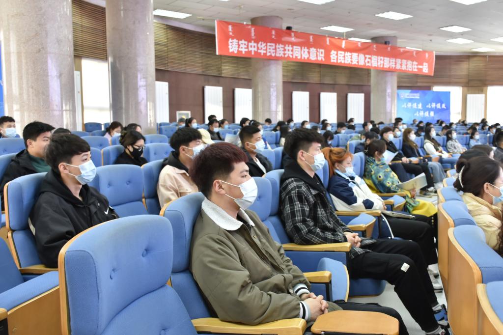 仪式后,包头市铸牢中华民族共同体意识研究中心主要成员、马克思主义学院院长刘翠芬,副院长李德英分别为在场的师生作了学术报告。刘翠芬老师从铸牢中华民族共同体意识研究中心的总体目标、具体目标、具体举措等方面介绍了研究中心下一阶段的工作思路,李德英老师以《铸牢中华民族共同体意识》为题为大家阐释了中华民族多元一体格局的形成与发展过程和铸牢中华民族共同体意识的重要意义。