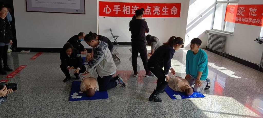 为推进我校健康校园建设,根据包头师范学院健康校园实施方案,后勤处积极联系与包头市120医疗急救指挥中心为我校广大学生和校医院全体工作人员开展了“关爱他人 珍爱生命”急救知识健康教育活动,本次活动得到了宣传部、学工部、信息科学与技术学院等部门的大力支持。