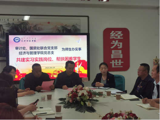 联合党支部书记张迎峰同志介绍了共建的五项内容。审计处、国资处联合党支部发挥专业优势,与经济与管理学院共建学生实习、实践岗位并签订协议、推荐优秀实习生、设立勤工助学岗、学业帮扶等五方面内容。审计处设置2个实习岗位,国资处设置1个实习岗位,为经济与管理学院提供实习、实践岗位。同时对我院学生进行就业指导,提供职业规划服务并对表现优异的实习生做相应专业领域就业推荐。