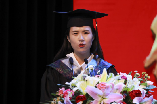 毕业生家长代表吕姝贤女士首先对学校、学院和老师们表达了深深谢意,对即将毕业的同学们表示祝贺。她叮嘱学生们,未来在面对选择时,要保持清醒的头脑,把握正确的人生方向;面对挑战时,要拥有百折不挠的韧劲,勇于攻坚克难。希望同学们今后的人生历程中,无论荣辱悲喜,都勿忘母校,感恩母校,常念老师之博学,感恩老师之教诲,用智慧和勤奋、人格和情操书写自己人生的华彩篇章!