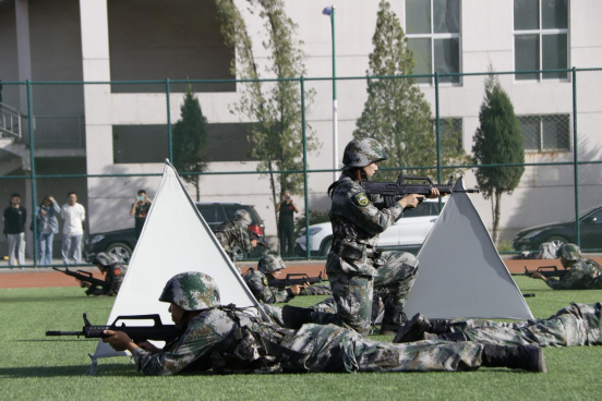 在军训汇报表演中,参训新生代表和军训教官分别进行了基础战术、花式队列、女子匕首操、红缨枪、反恐战术、格斗擒拿等特色汇报表演。参演同学们精神抖擞、口号响亮,动作精炼,充分展示了本次新生军训的成果和收获。
