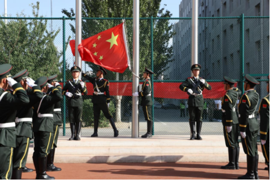 全体教师学生起立,升国旗,奏唱国歌,现场气氛庄严热烈。