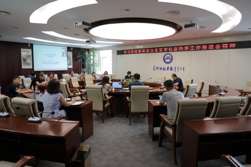 7月14日上午,我校在第二学术报告厅召开专题会议,学习传达自治区哲学社会科学工作推进会精神,解读自治区“十四五”时期哲学社会科学发展规划,就我校贯彻落实工作进行安排部署。校党委委员副校长格根哈斯主持会议并讲话,学校党委委员,有关职能部门负责人,相关学院党总支书记、院长参加会议。