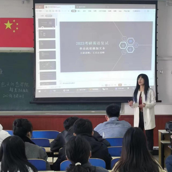 辅导老师重点向同学们介绍了考研复试的时间、考试形式、考前准备、注意事项、院校调剂、英语面试技巧等内容,讲座内容全面具体,为同学们的复试准备提供了很大的帮助。