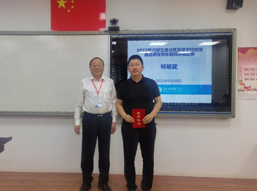 比赛按照《全国高等学校物理基础课程青年教师讲课比赛实施方案(试行)》进行组织,于2023年5月26日在包头师范学院博学楼顺利进行。来自内蒙古各高校的5位专家组成评审委员会,由内蒙古大学、内蒙古师范大学、内蒙古工业大学、内蒙古农业大学、内蒙古科技大学、包头师范学院、赤峰学院等自治区高校选送的11位优秀青年教师参加比赛。经过一天的激烈角逐,评审委员会经过严格评议,评选出特等奖2个,一等奖4个,二等奖5个,其中物理科学与技术学院推荐的参赛教师何金龙老师,在比赛中取得特等奖的好成绩,并代表内蒙古自治区参加华北地区复赛。