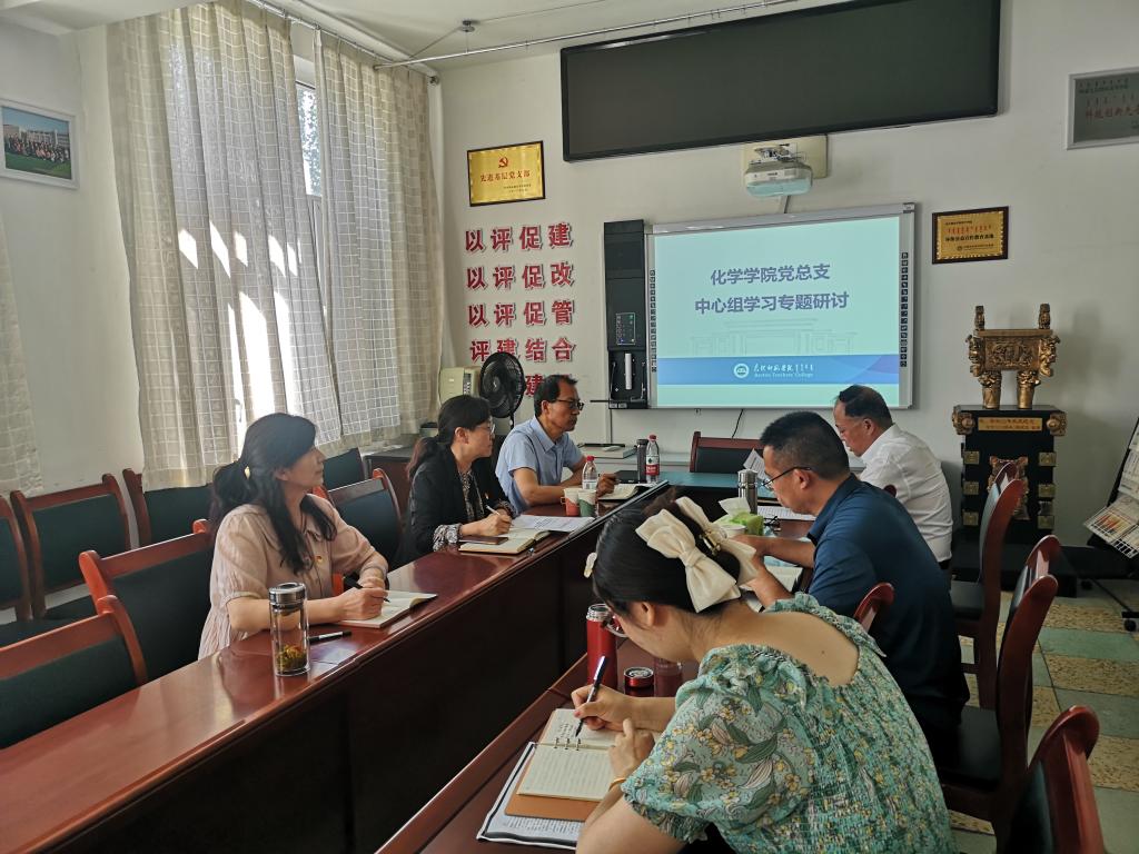 6月16日上午,包头师范学院党委委员、副校长马占飞和研究生院党总支副书记魏春艳院到化学学院调研了解主题教育开展情况并巡听旁听学院中心组专题学习研讨。化学学院领导班子和部分党总支委员、党支部书记参加会议。