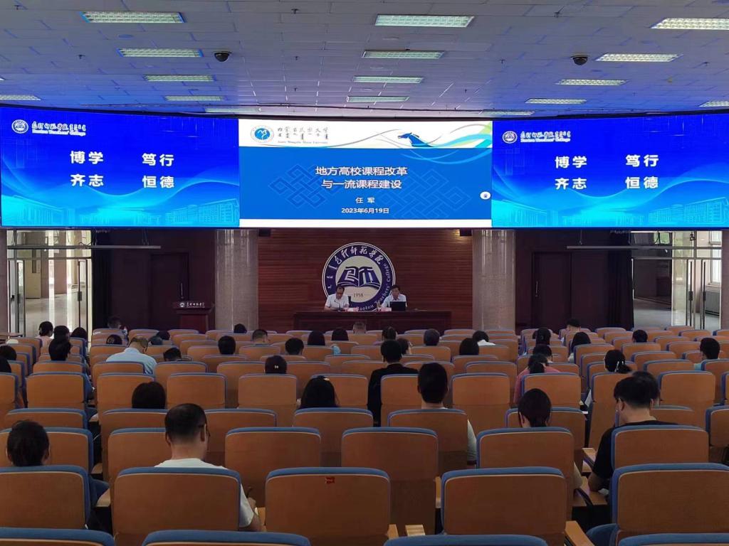 课程是人才培养的核心要素,课程质量直接决定人才培养质量。为贯彻落实习近平总书记关于教育的重要论述和全国教育大会精神,落实新时代全国高等学校本科教育工作会议要求,必须深化教育教学改革,必须把教学改革成果落实到课程建设上。为推进我校课程改革及一流本科课程建设,提升一流本科课程申报质量,6月19日,学校特邀原内蒙古民族大学副校长任军教授开展“地方高校课程改革与一流课程建设”专题讲座。