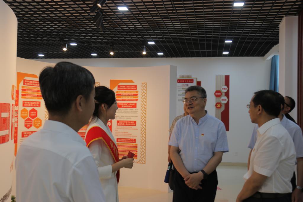 巡回指导组一行实地参观了“石榴籽”广场、学生“一站式”社区、马克思主义学院“石榴籽”智慧教室、大学生双创基地、创新创业学院及教师教育学院党支部活动室,详细了解基层组织开展主题教育情况及师生党员日常理论学习和成果转化情况。指导组还参观了校史馆,了解学校历史发展沿革、人才培养成果及主题教育成效。