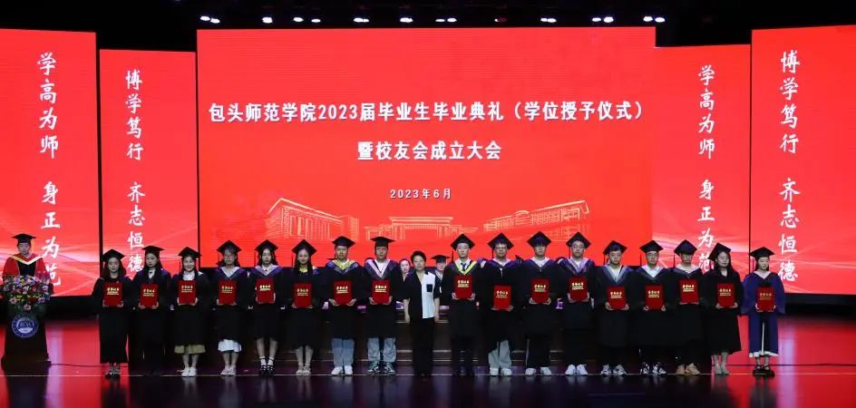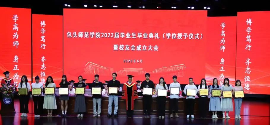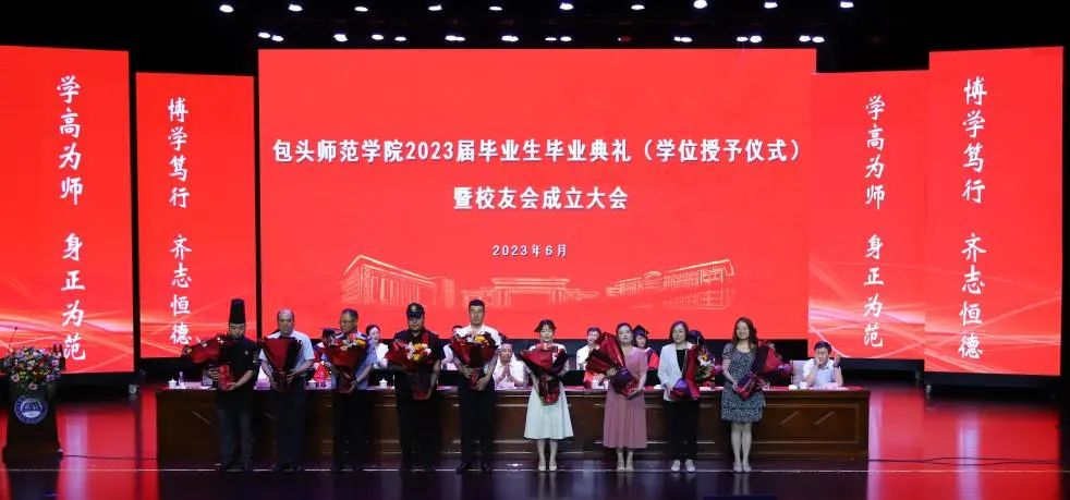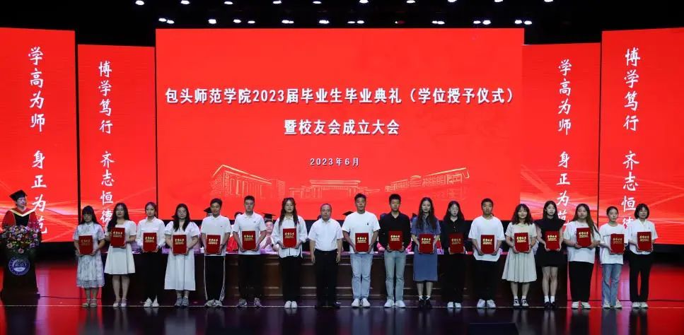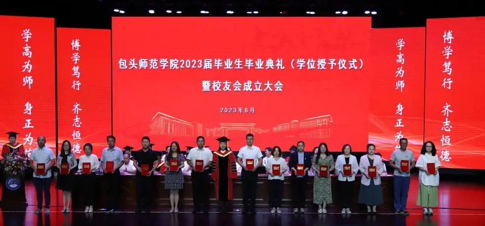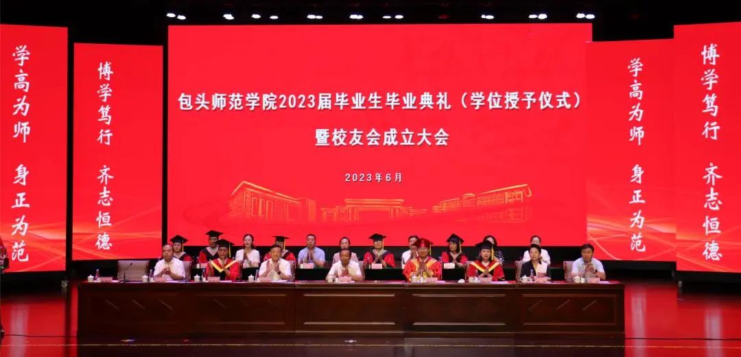 千川汇海阔,风正好扬帆。6月29日上午8:30学校2023届毕业生毕业典礼(学位授予仪式)暨校友会成立大会在会堂隆重举行。校领导黄海、郭金虎、施纪华、格根哈斯、马占飞出席大会。学校优秀校友代表,校党委委员、校学位评定委员会成员,各部门负责人,各学院领导班子成员、学工办主任、辅导员、班主任、教师代表和2023届毕业生代表参加了大会。大会在嘹亮的国歌声中正式开始。