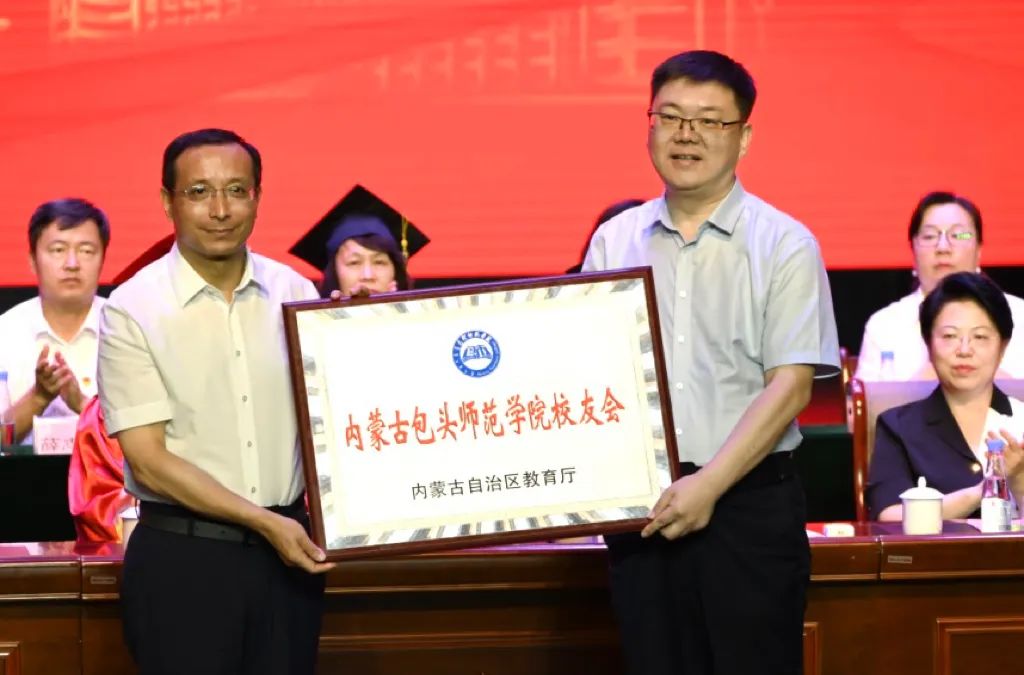 校友代表,自治区名师工作室成员,包头市第十四届政协委员、“十大”杰出青年、“鹿城英才”、优秀教育工作者,包头市第九中学副校长、我校1991届物理系毕业生曹聪明向即将离开母校的学弟学妹们送上最诚挚的祝福。“一是坚持就能成功;二是谦虚使你进步;三是乐观成就幸福人生。”