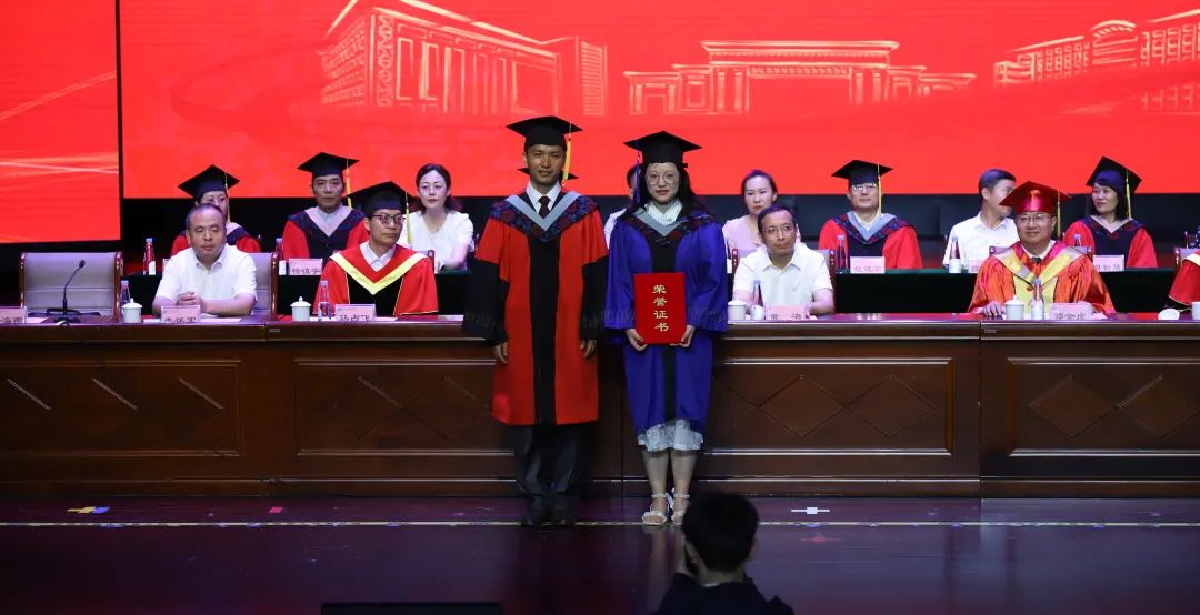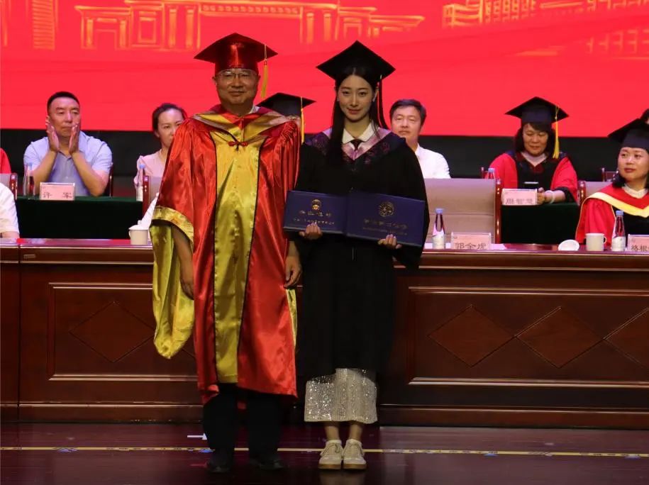 党委副书记、校长郭金虎逐一为毕业生代表拨穗并颁发毕业证书和学位证书。