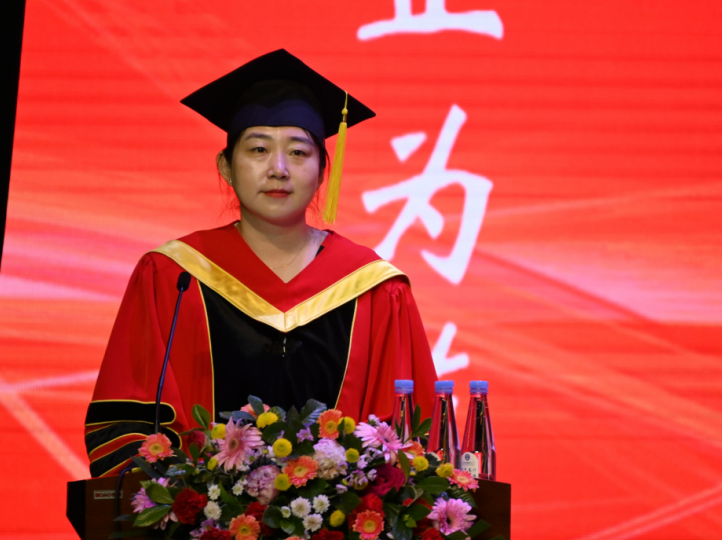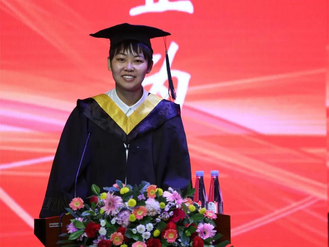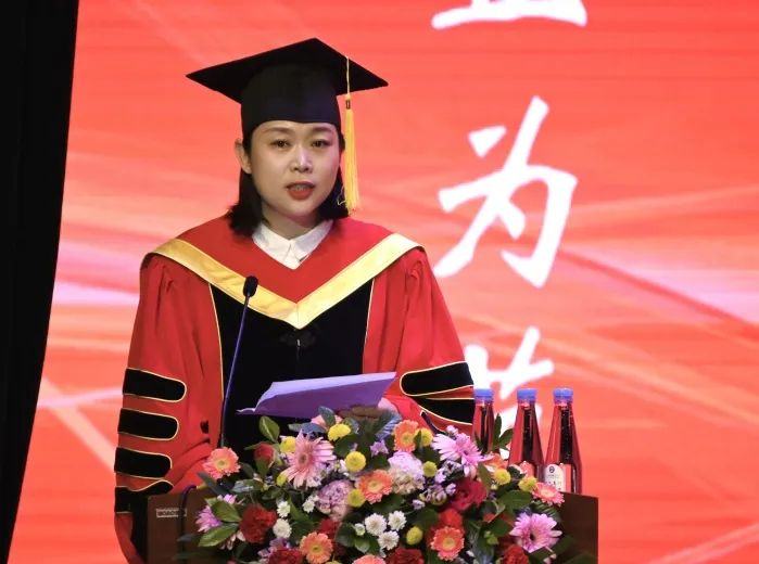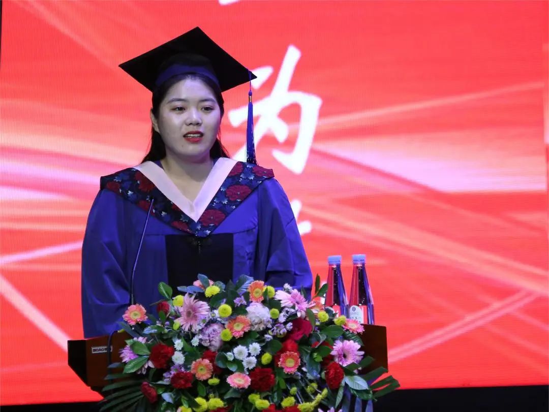 硕士毕业生代表、小学教育专业张慧敏同学回望了在研究生的求学生涯过程中,同学们学会了在博学中学真知;学会了在笃行中寻真解;学会了在齐志中砥砺前行;学会了在恒德中担大任。