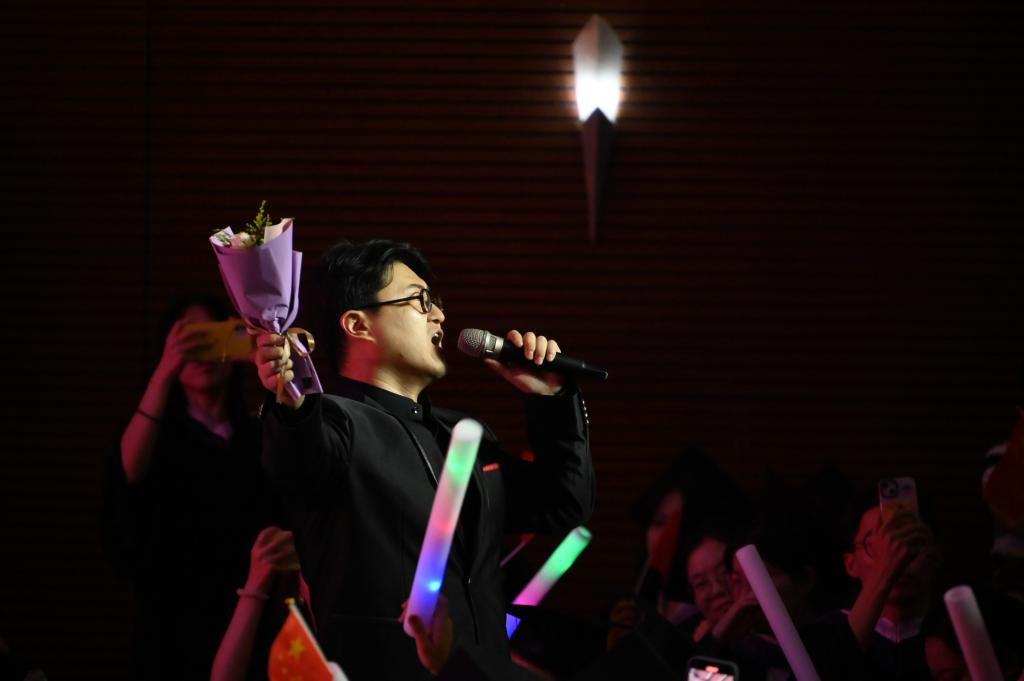“一朝包师人,一世包师情;一朝沐杏雨,一生念师恩”。本科毕业生代表,共青团中央十九大代表、全国大学生年度人物提名奖获得者、中国大学生“自强之星”获得者、学生兼职校团委副书记、物理科学与技术学院常笑楠同学依依惜别。“愿我们乘青春之风,在复杂多变的社会漩涡上纵横驰骋,在奔腾翻涌的人生波涛中激流勇进,在以中国式现代化推进中华民族伟大复兴的时代洪流里踏浪而行!”
