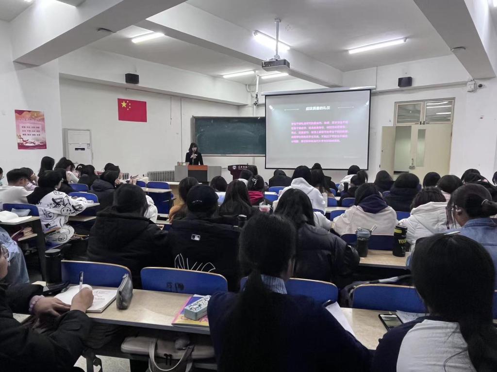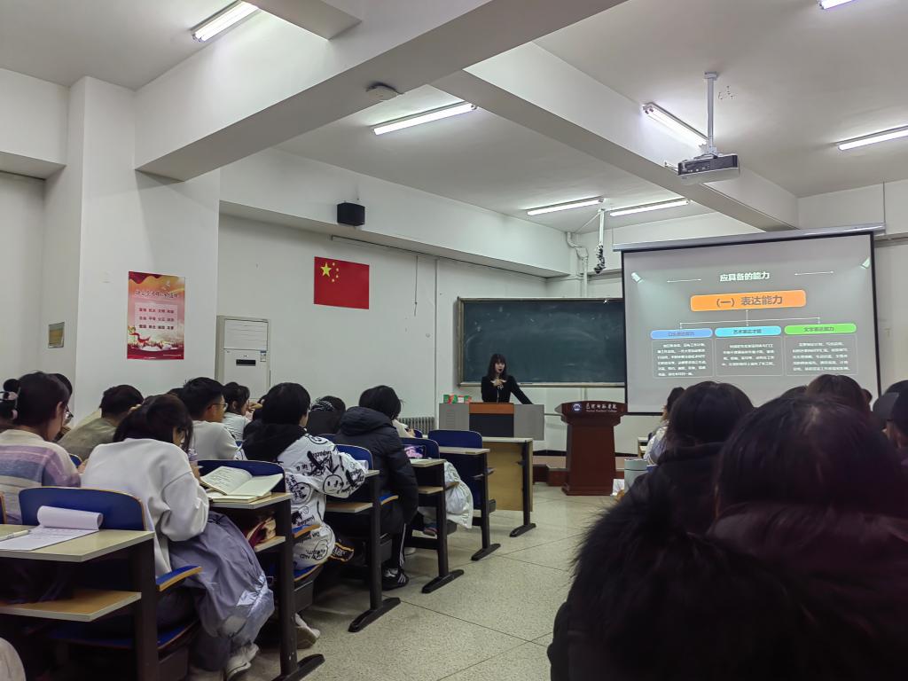 王璐然结合自身教育和管理工作经验,以“如何成为一名优秀的学生干部”为主题,从学生干部角色定位、应具备的礼仪和精神、基本素质、基本能力等六个方面进行了详细讲解,引导学生干部严格自律、以身作则,自觉树立当代大学生的良好风范和形象,展现教科学子的风采。王老师还强调要做好学生干部,必须具有服务意识和奉献精神,具备高度责任感,不断提升为同学服务的工作能力,坚持自我约束和自我监督,严格要求自己,做一名优秀的学生干部。最后,王老师号召全体学生干部要有情怀、有学识、有担当,在付出中收获成长,在最美好的年华里奔赴使命,追逐梦想。