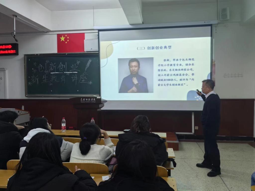 为深入贯彻国家“大众创业、万众创新”理念,激发大学生创新创业热情,提升教育科学学院23级新生创新创业能力。11月22日晚,教育科学学院在博学楼400举行了“创新创业”新生入学教育讲座。