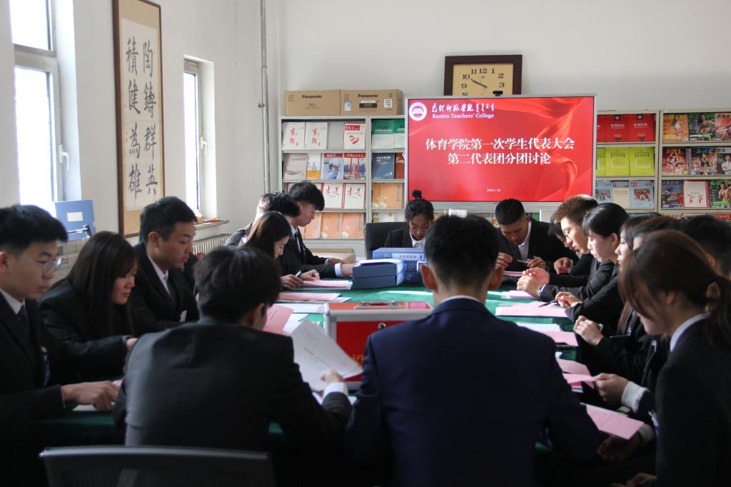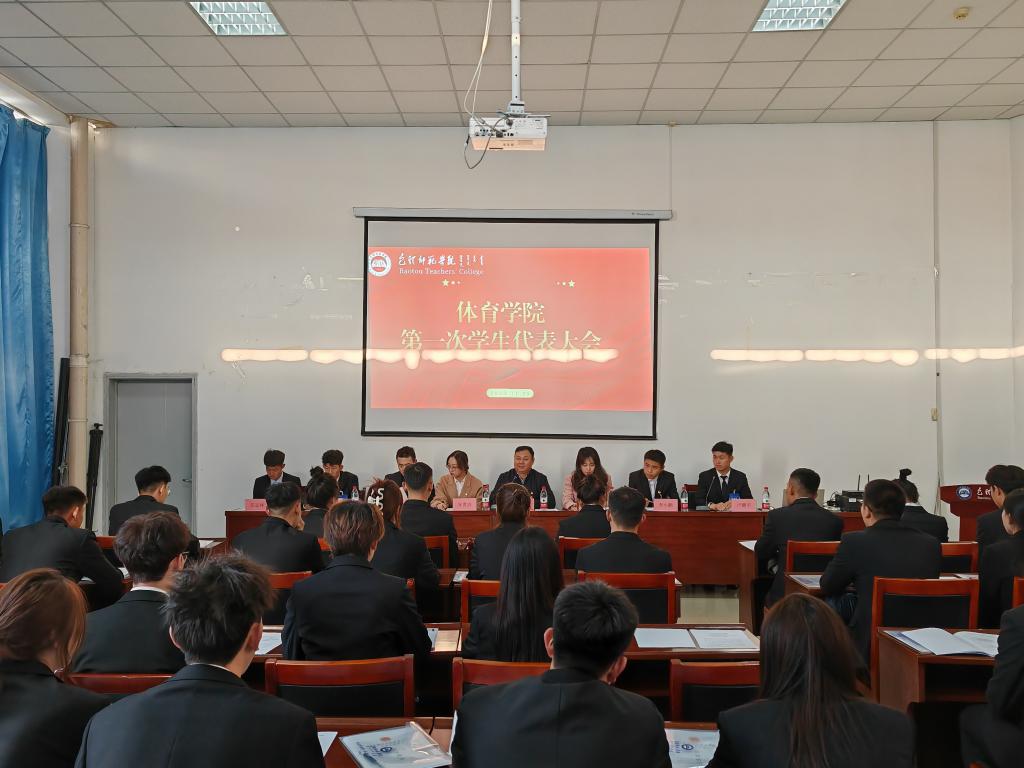 11月25日,体育学院第一次学生代表大会在体育馆会议室顺利召开。学院党总支书记韩伟,团总支负责人安世洁、辅导员宋蕾、钱云龙应邀出席会议。体育学院本科生各班团支部推选产生的46名学代会代表现场参加了大会。会议由学生会主席团候选人卢鹏宇同学主持。