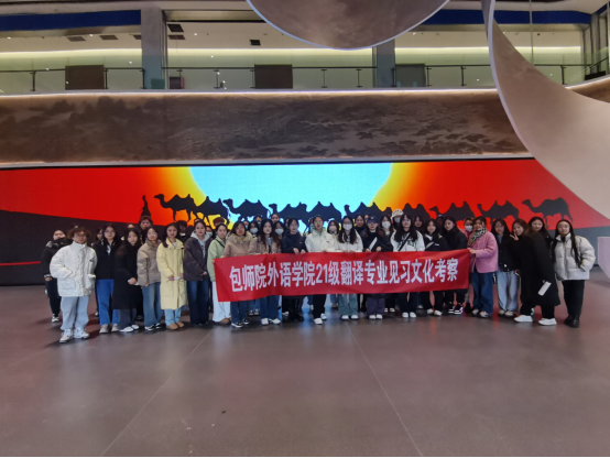 12月5日,外国语学院21级翻译专业的学子们踏上了一次令人难忘的文化之旅。在翻译系主任郝璐老师的带领下,同学们参观了包头黄河国家文化公园博物馆和内蒙古包头博物馆。这次文化考察见习活动不仅让同学们领略了黄河文化和包头文化的独特魅力,更让大家近距离感受了中华历史文化的丰富和厚重。