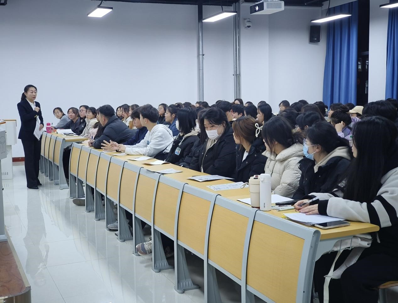 12月5日晚,在九原校区综合教学楼302,学院党总支书记李灵芝进行宣讲。