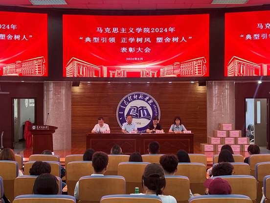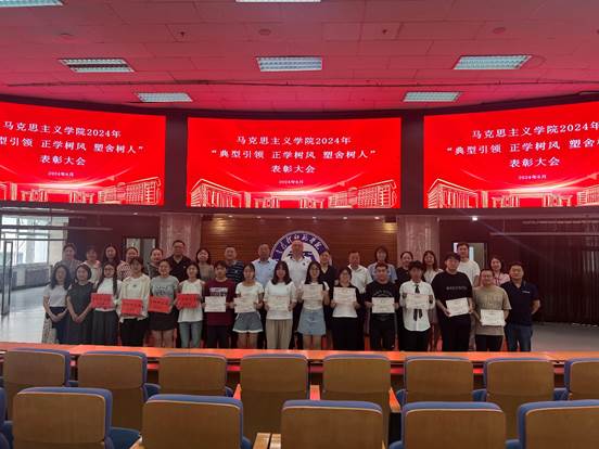 为深入贯彻落实《包头师范学院“一站式”学生社区综合管理模式建设实施方案》《“打造公寓文化,创造优良学风”正学树风计划实施方案》等文件精神,引导激励学生勤奋学习、锐意进取、奋发有为、成长成才,2024年6月20日下午,马克思主义学院在博学楼学术报告厅召开了2024年“典型引领、正学树风、塑舍树人”表彰大会。马克思主义学院全体教师、班主任、辅导员、研究生、本科生、预科生参加了会议。会议由学院党总支副书记郭宏升主持。