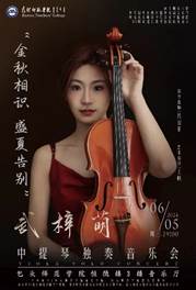 6月5日,以“金秋相识,盛夏告别”为主题的武梓萌中提琴独奏音乐会,成为2020级音乐表演班学生武梓萌的毕业献礼。音乐会上,她深情演绎了六首作品,包括四首外国曲目和两首中国曲目,跨越了西方巴洛克时期、浪漫时期的音乐风格,同时也展现了中国新疆、蒙古
